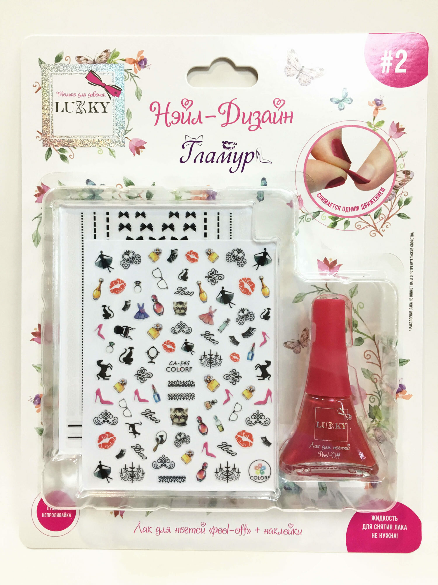 Купить Набор для маникюра детский LUKKY Нэйл-Дизайн 2в 1 Гламур: лак для ногтей на водной основе бордо и наклейки