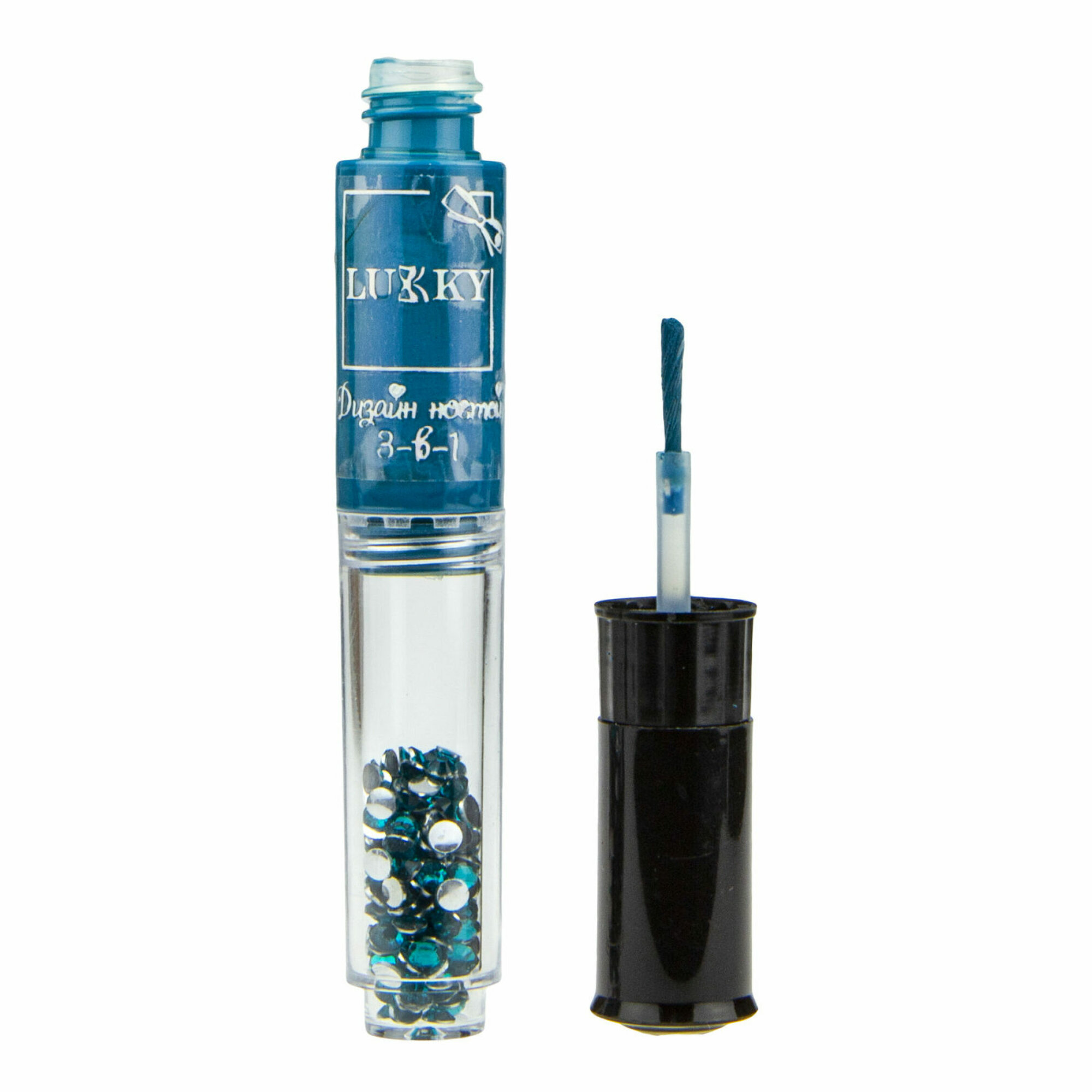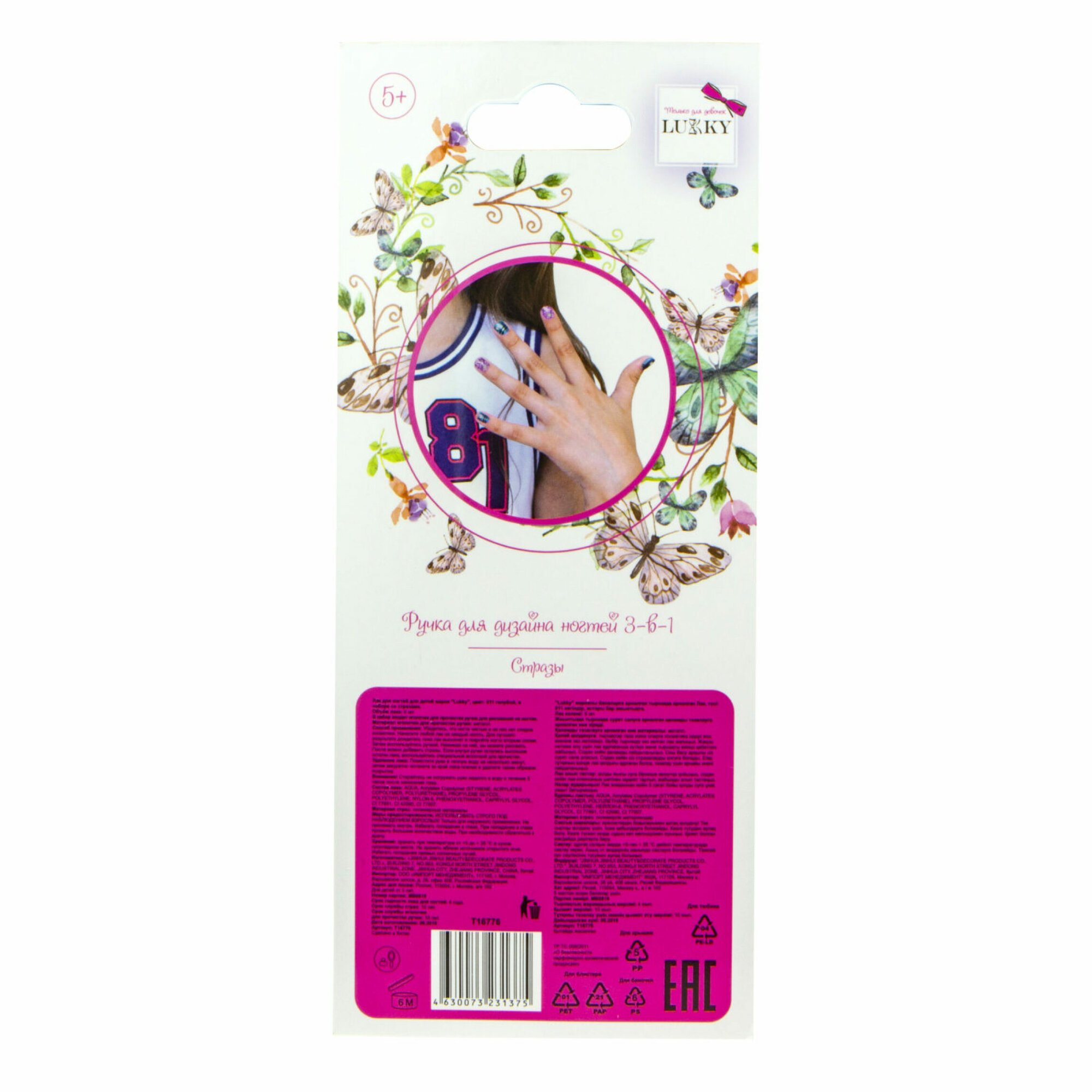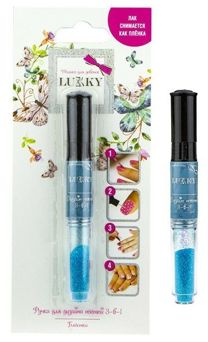 Ручка для дизайна ногтей Lukky 3-в-1: лак для ногтей детский на водной основе, ручка для дизайна, стразы, цвет голубой интересное:
