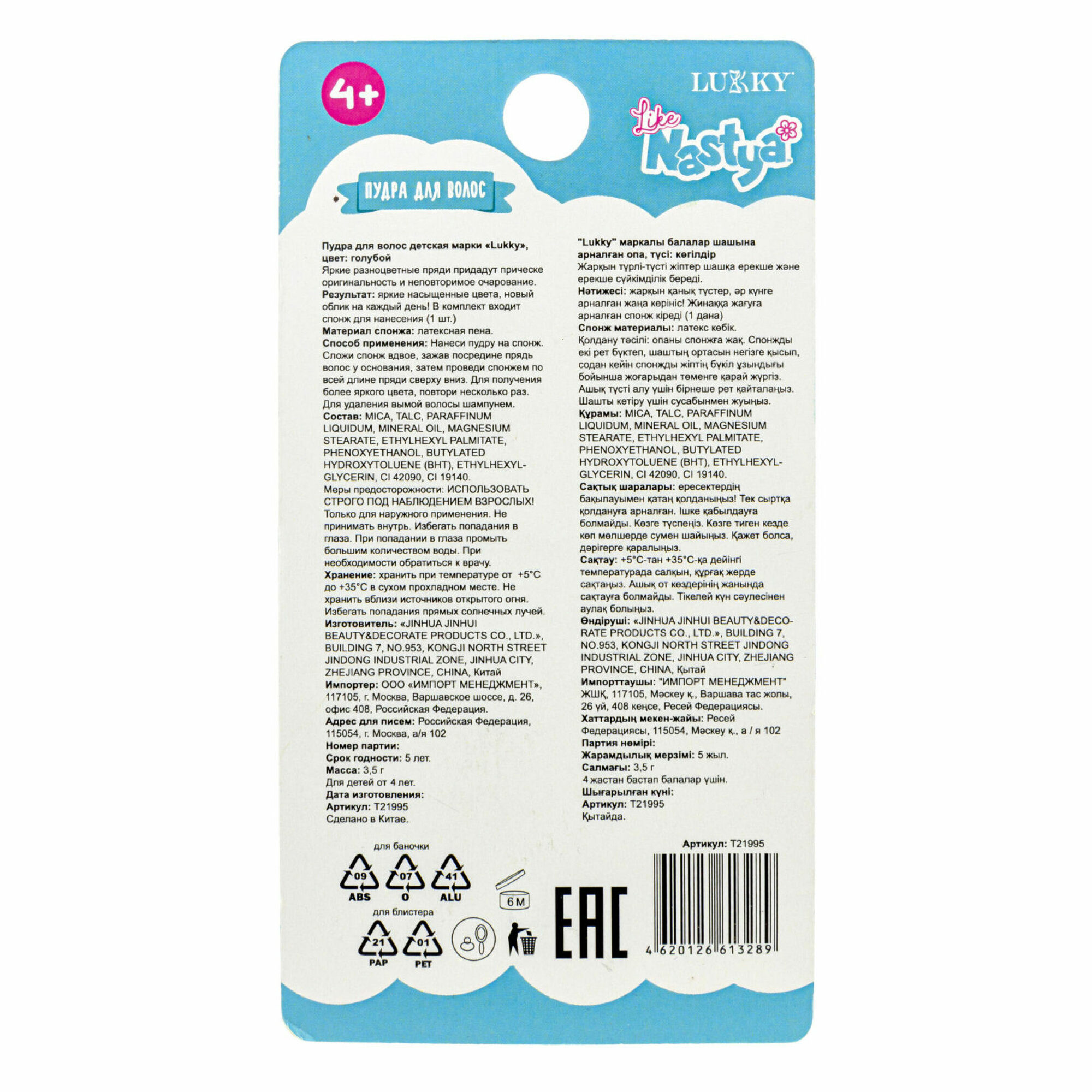 Купить Пудра для волос Like Nastya в клипсе со спонжем, цвет голубой, 3,5 гр, для девочки