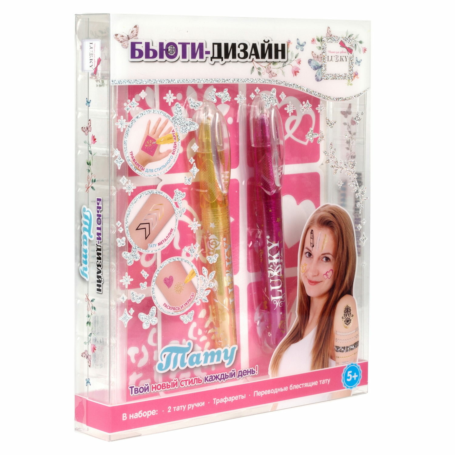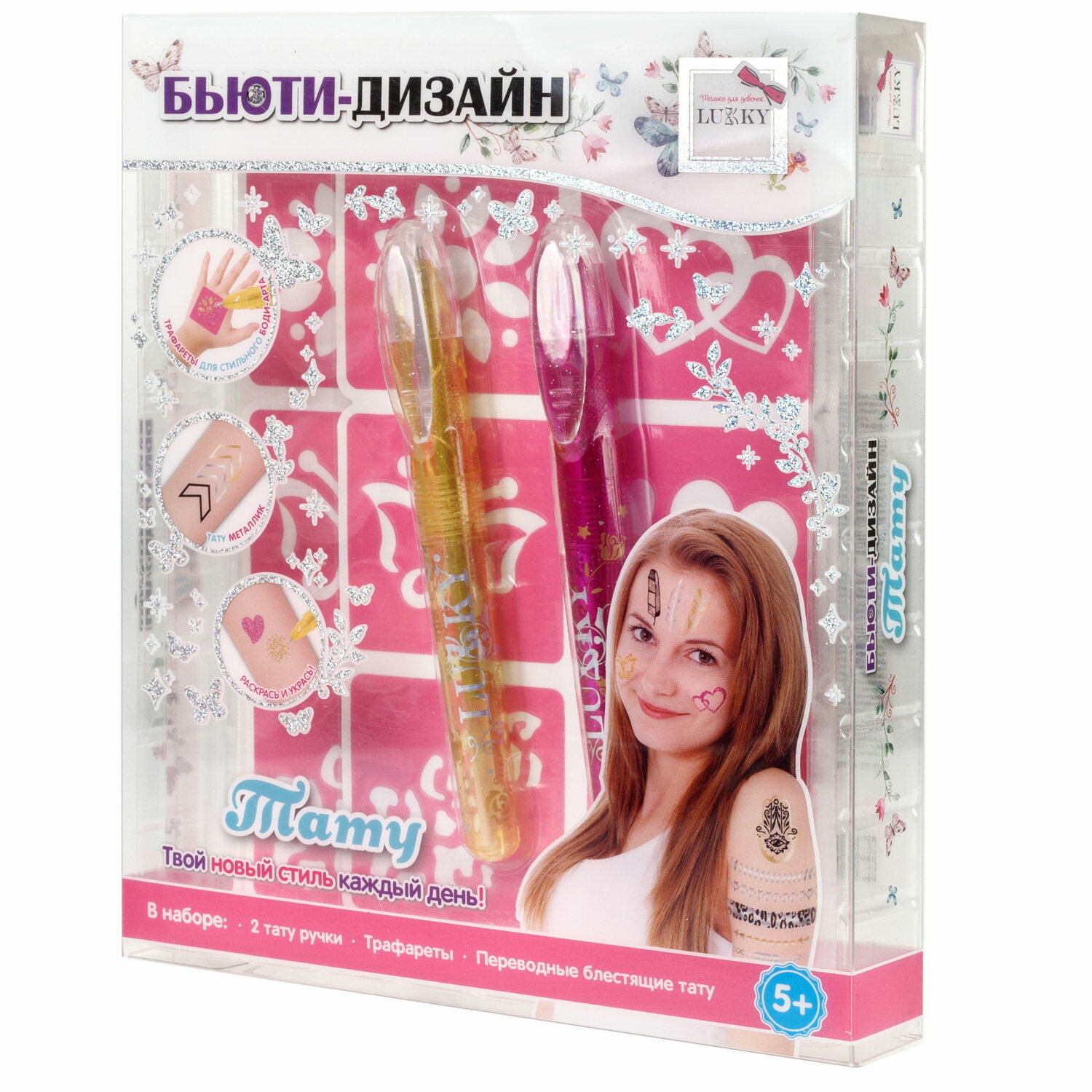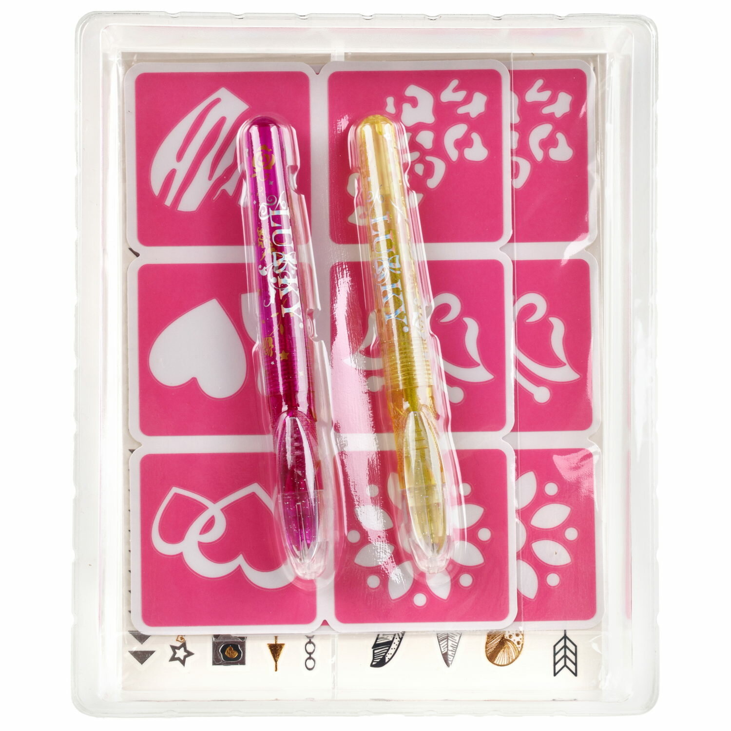 Купить Набор для боди-арта Lukky Бьюти-Дизайн с 2 тату ручками, трафаретами и переводными блестящими тату