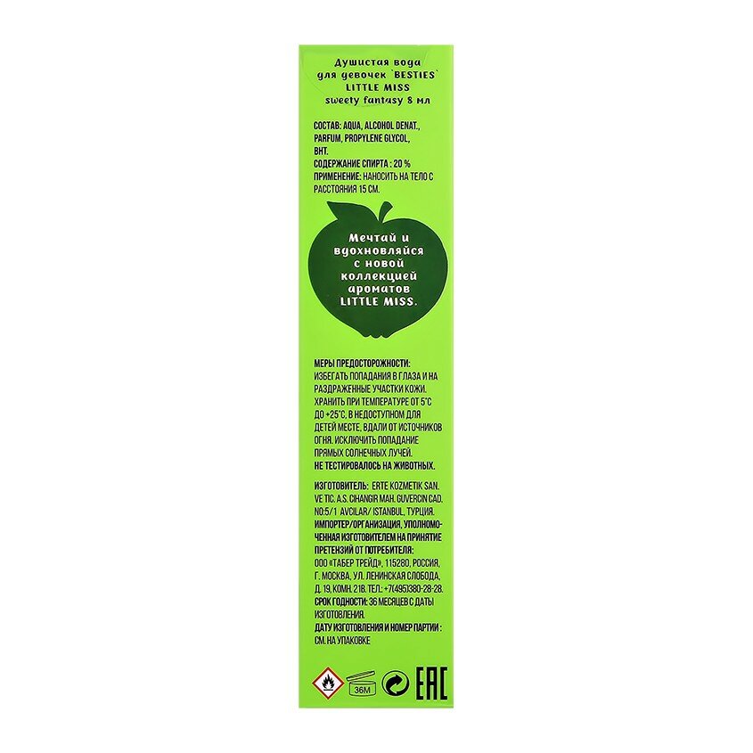 Душистая вода BESTIES LITTLE MISS для девочек sweety fantasy 8 мл интересное: