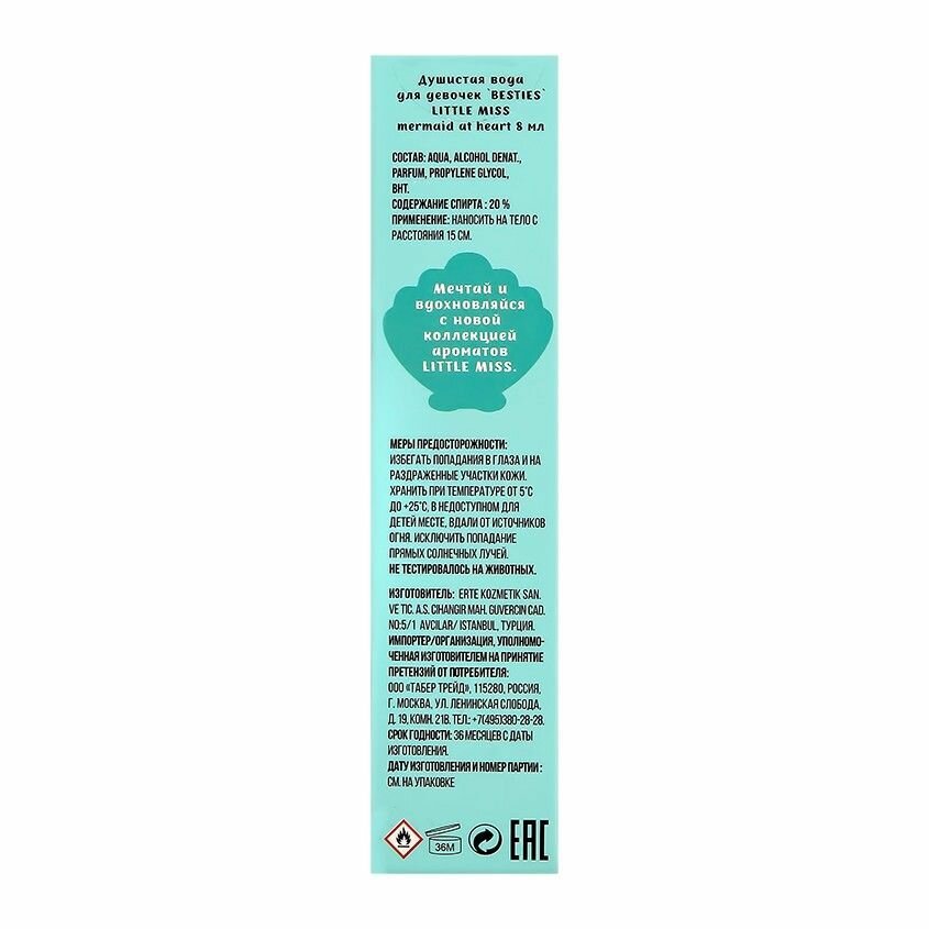 Душистая вода BESTIES LITTLE MISS для девочек mermaid at heart 8 мл интересное: