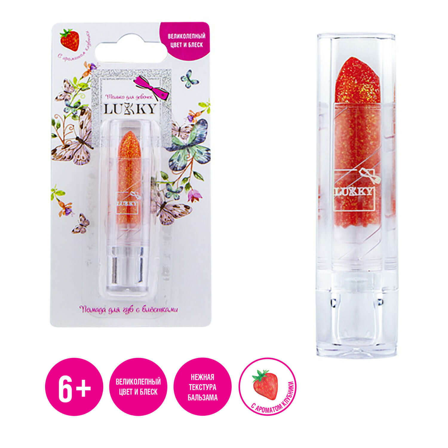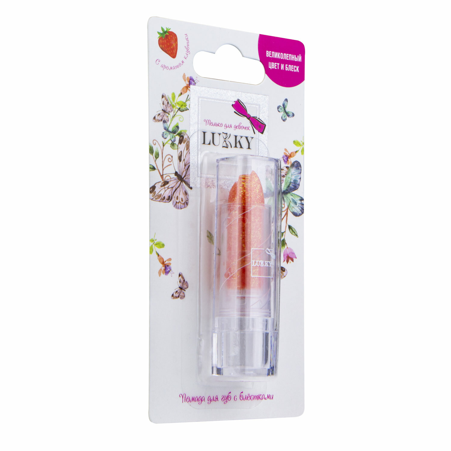 Помада для губ LUKKY с блёстками, с ароматом клубники, коралловый интересное: