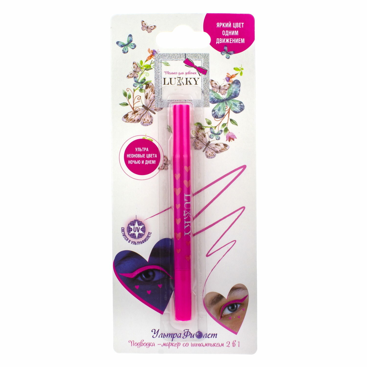 Подводка для глаз Lukky УльтраФиолет маркер со штампиком, сердечко, розовый интересное: