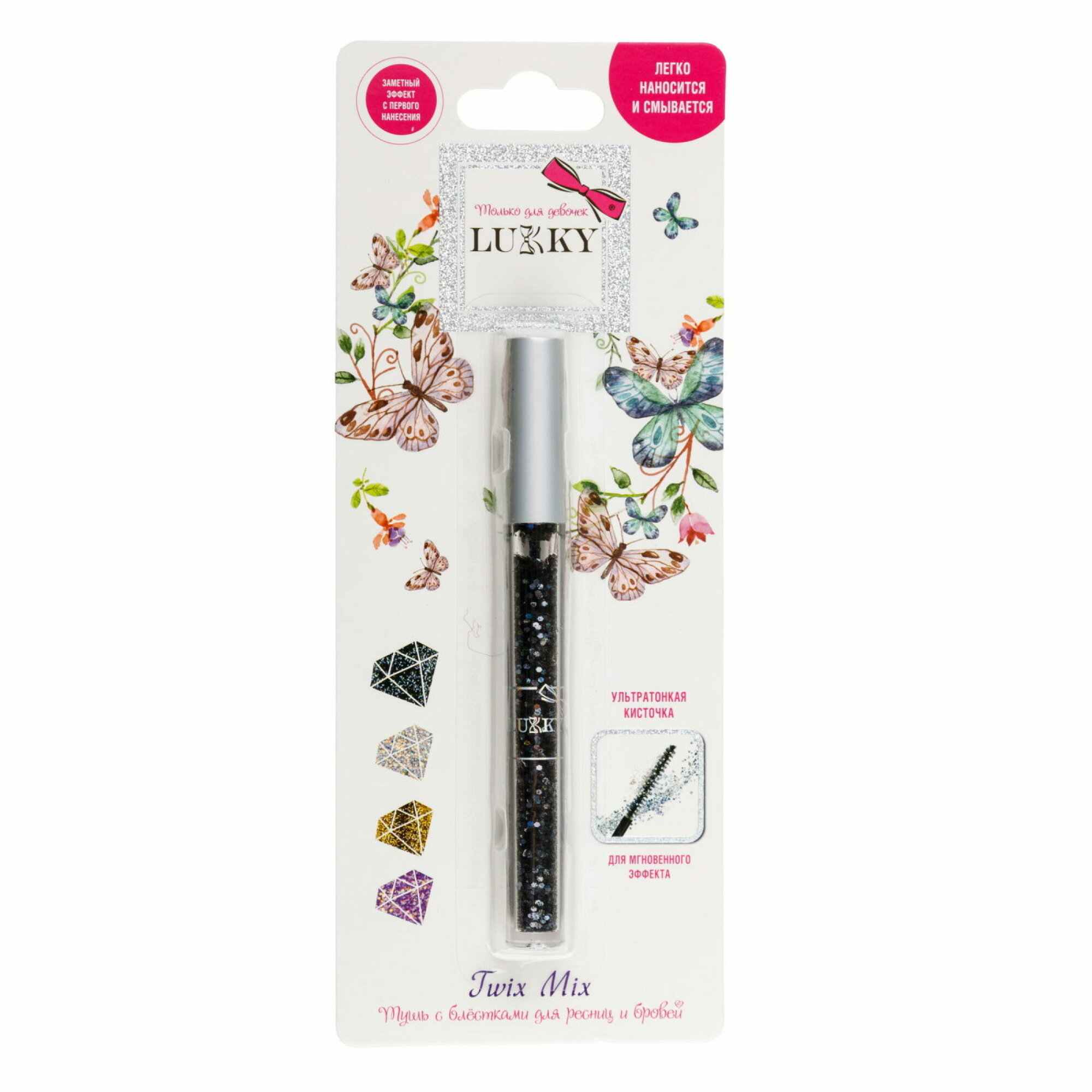 Купить Тушь с блёстками для ресниц и бровей Lukky Twix Mix ультратонкая кисточка, цвет черный с блестками, 2 гр