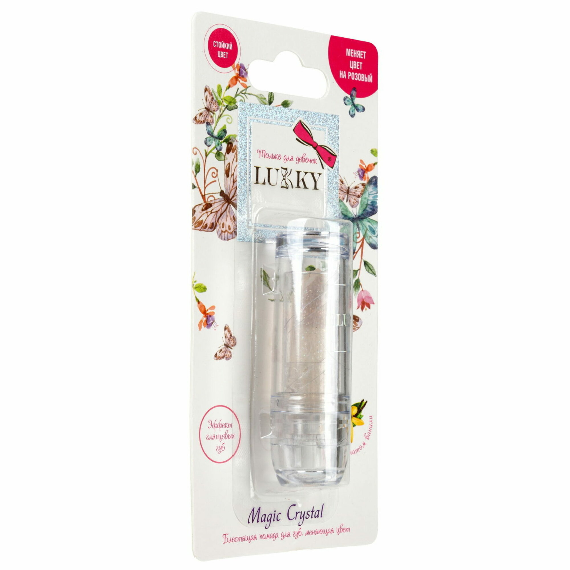 Lukky Magic Crystal блестящая помада, меняющая цвет на розовый, цвет прозрачный с блестками, с ароматом ванили, 3,4 гр интересное: