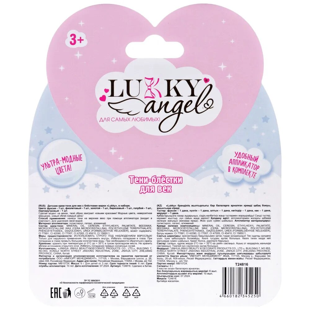 Купить Тени для век Lukky Angel с блёстками Разноцветные Сердечки 6 цветов аппликатор блистер Т24816