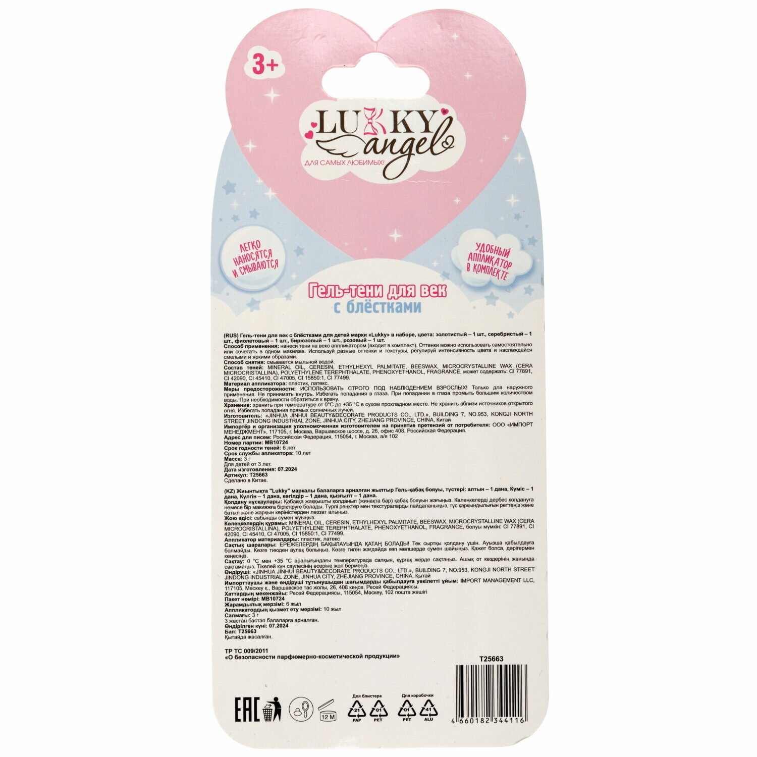 Гель-тени для век детские Lukky Angel, цвета: золотистый, серебристый, фиолетовый, бирюзовый, розовый, 3 г интересное:
