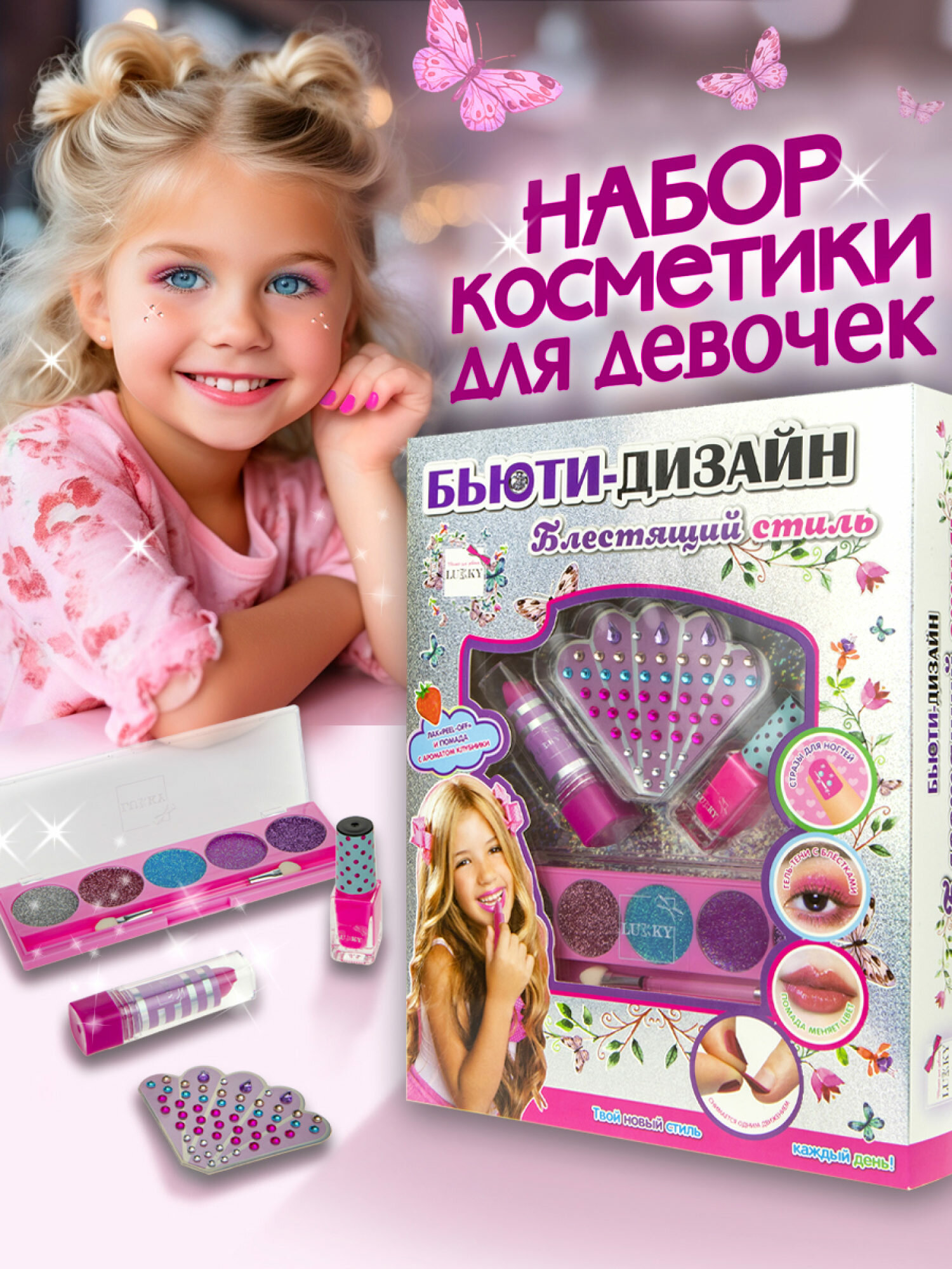 Набор для макияжа и маникюра Lukky Бьюти-Дизайн "Блестящий Стиль" интересное: