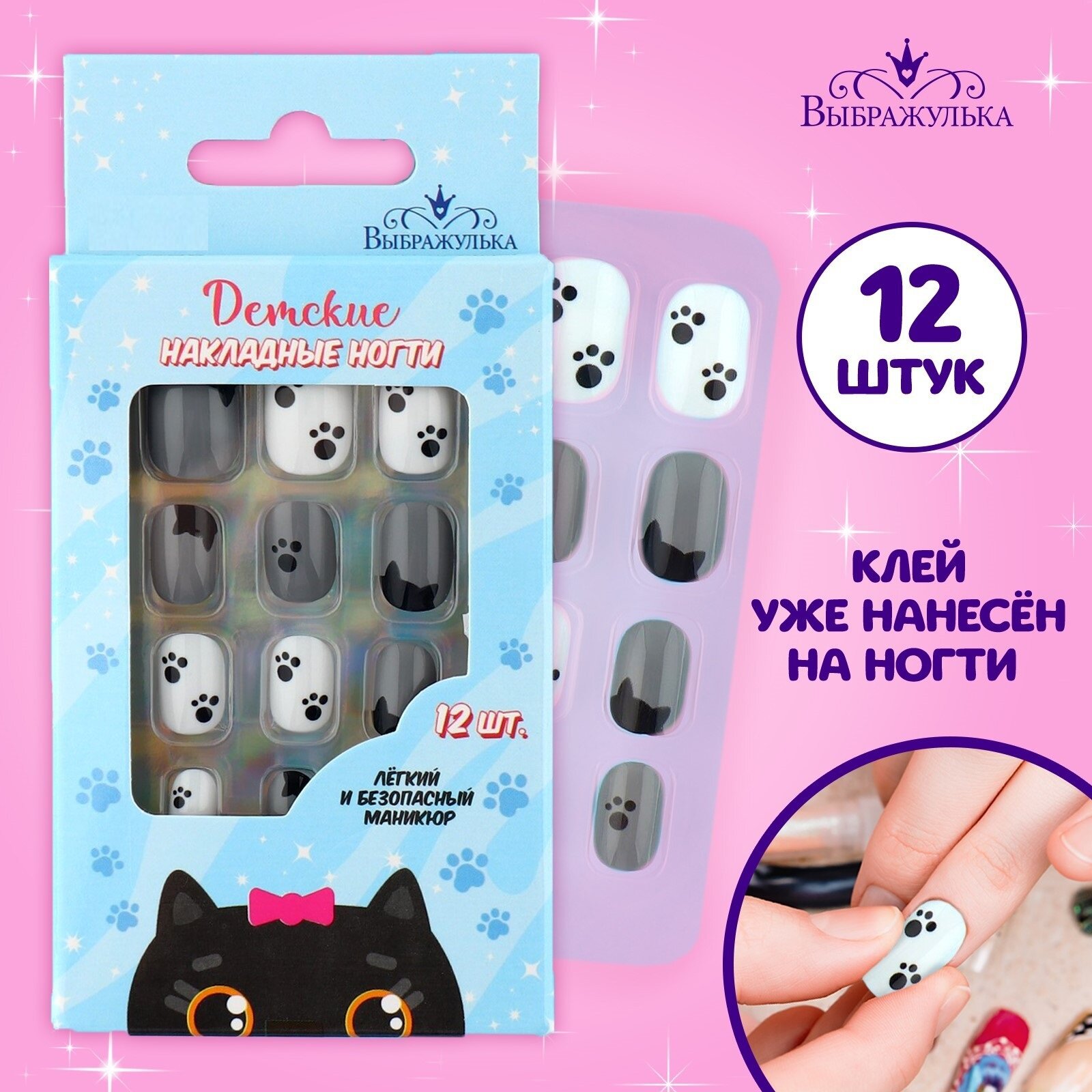 Купить Накладные ногти детские Выбражулька "Котик" с дизайном, 12 шт.