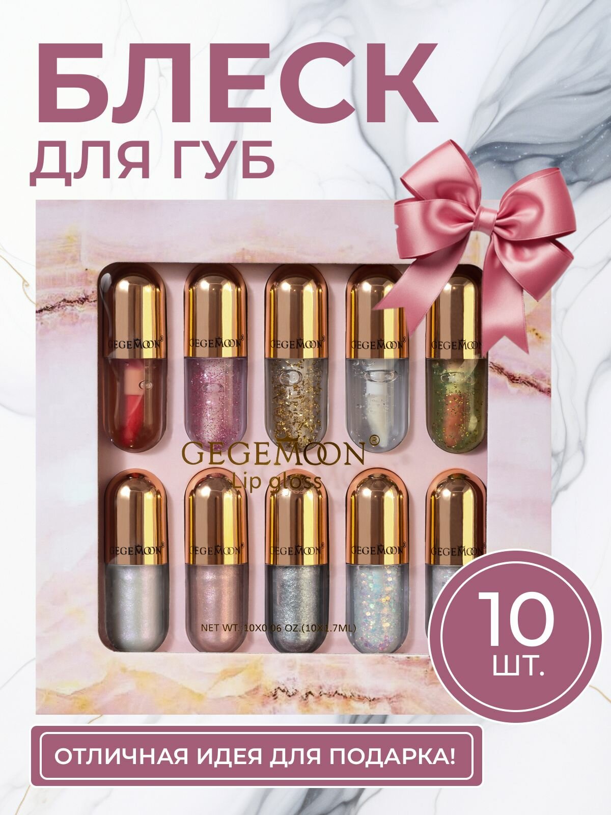 Купить Блеск для губ GEGEMOON, набор 10 шт, увлажняющий, с блесками