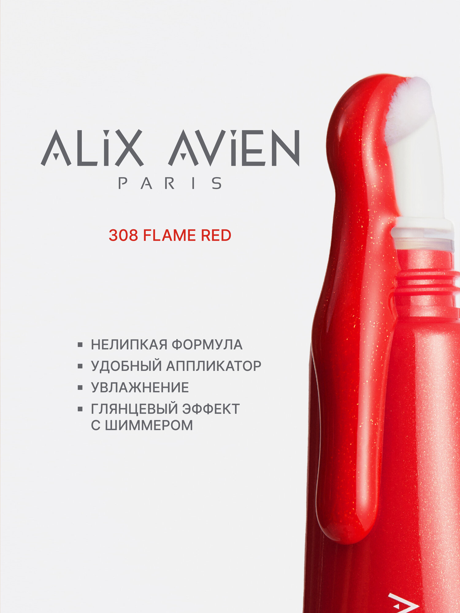 Купить Блеск для губ ALIX AVIEN тон 308 красный в тюбике, глянцевый с блестками, увлажняющий