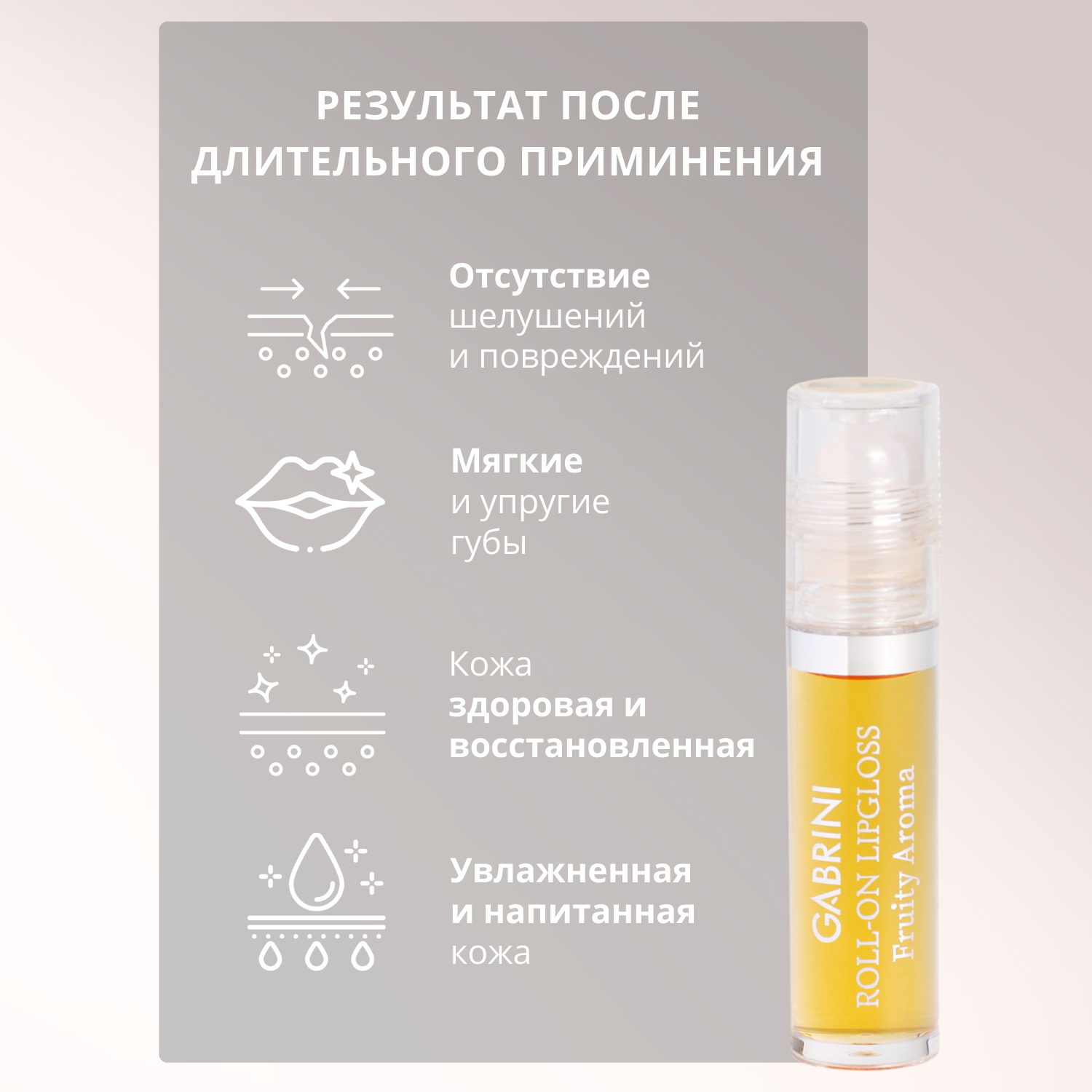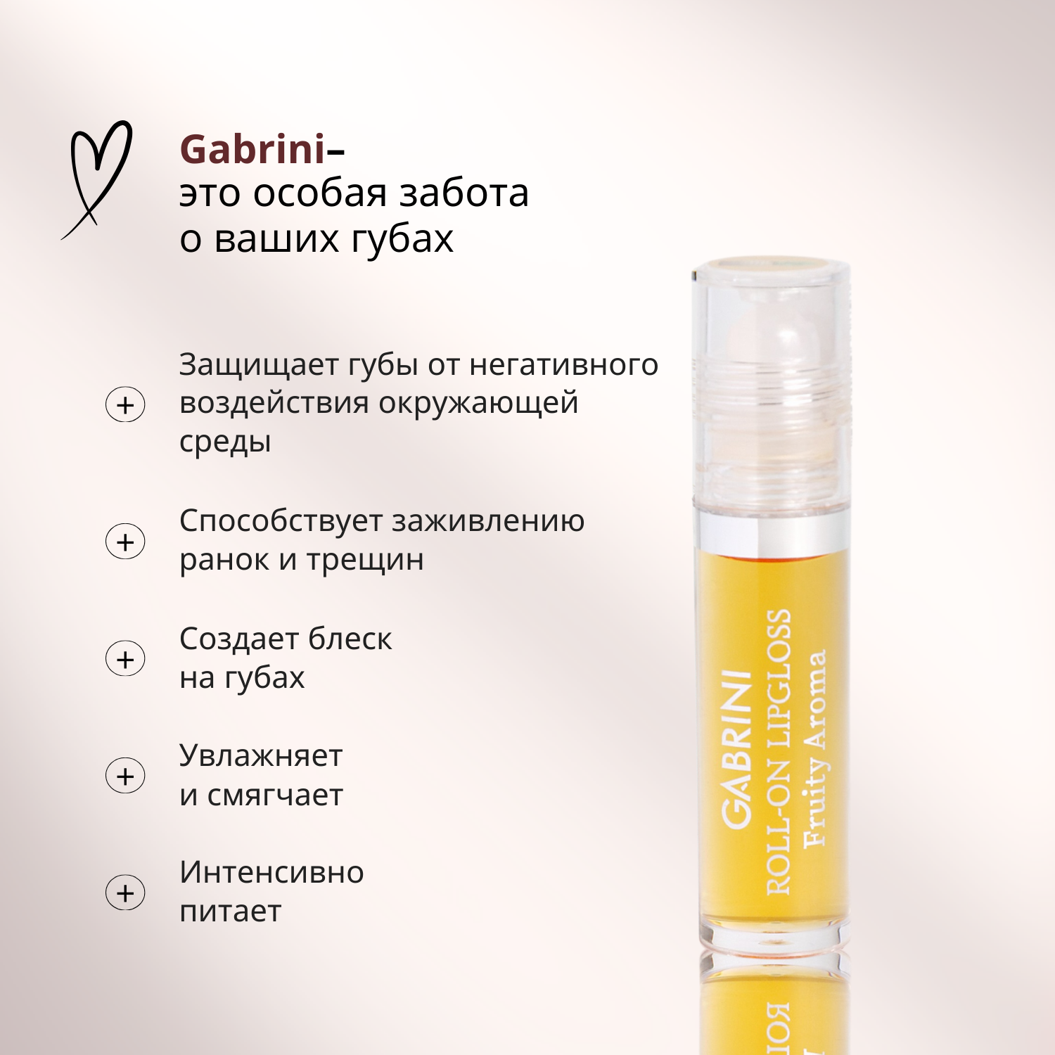 Блеск для губ GABRINI с шариковым аппликатором, цвет прозрачный, со вкусом мультифрукт, дарит блеск и сияние, 6мл