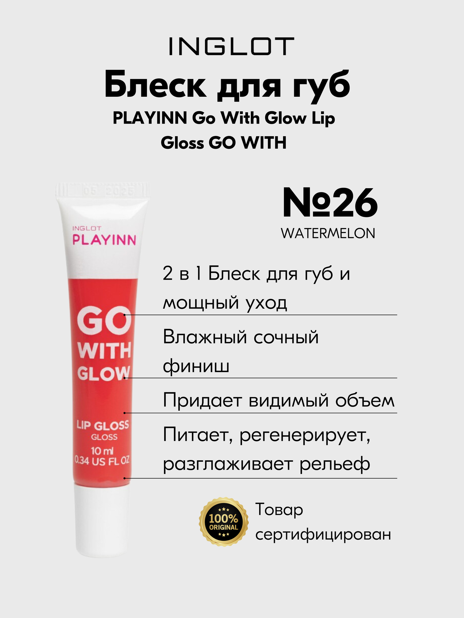 Купить Блеск для губ INGLOT ухаживающий разглаживающий глянец PLAYINN Go With Glow PINK №26