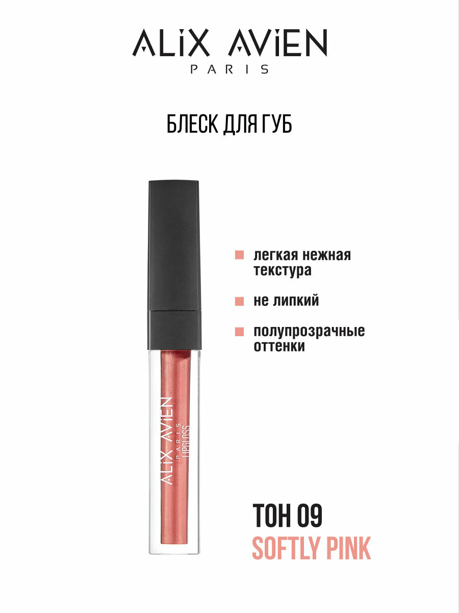 Купить Блеск для губ ALIX AVIEN тон 09 нежный розовый, с аппликатором, увлажняющая