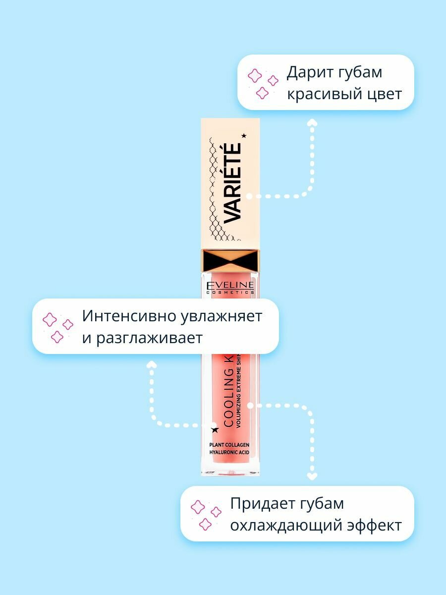 Блеск для губ 'EVELINE' VARIETE COOLING KISSES охлаждающий для увеличения объема, тон 04 Candy girl