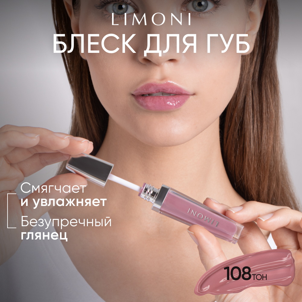 Купить LIMONI Блеск-бальзам для губ увлажняющий розовый глянцевый, тон 108