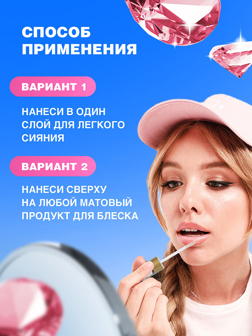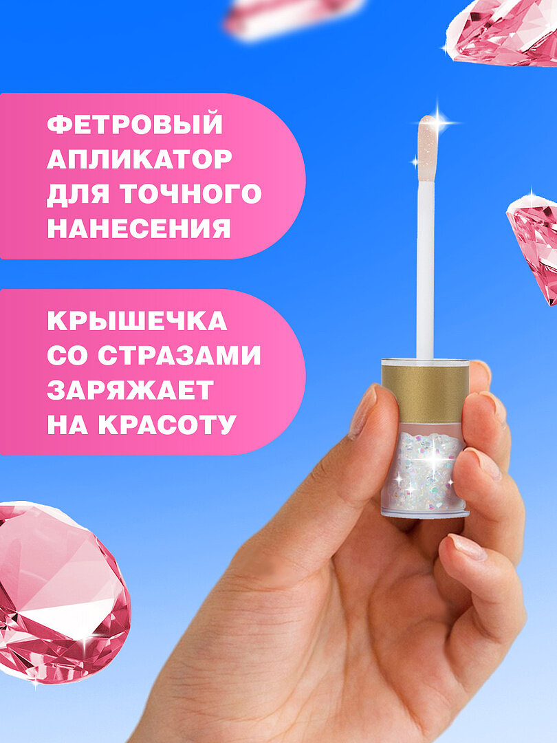 Блеск для губ Juicy Beauty Bomb смягчающий тон 01 Diamond Star прозрачный с нежно-розовыми блестками