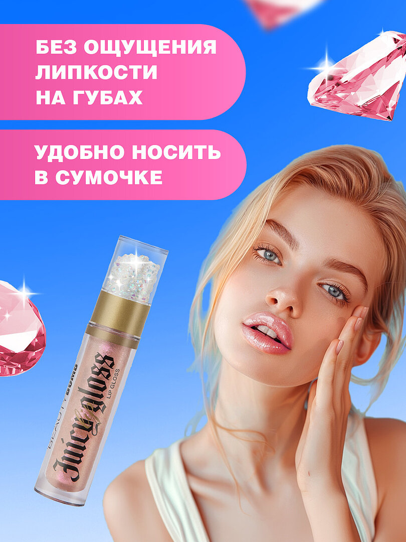 Блеск для губ Beauty Bomb Juicy, тон 02 Shine Baby нежно-розовый с блестками