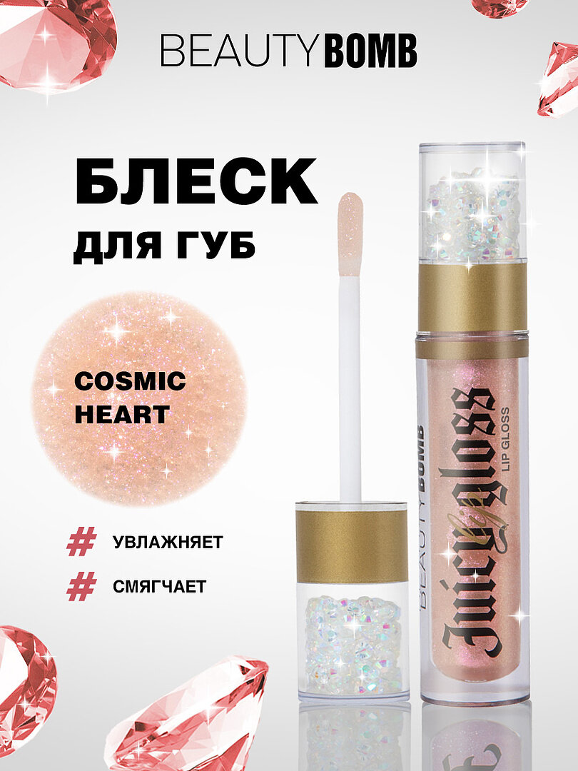 Купить Блеск для губ Juicy Beauty Bomb смягчающий тон 06 Cosmic Heart прозрачный с ярко-розовыми блестками