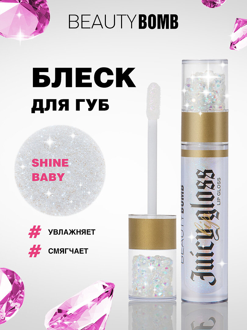 Блеск для губ Juicy Beauty Bomb смягчающий тон 01 Diamond Star прозрачный с нежно-розовыми блестками