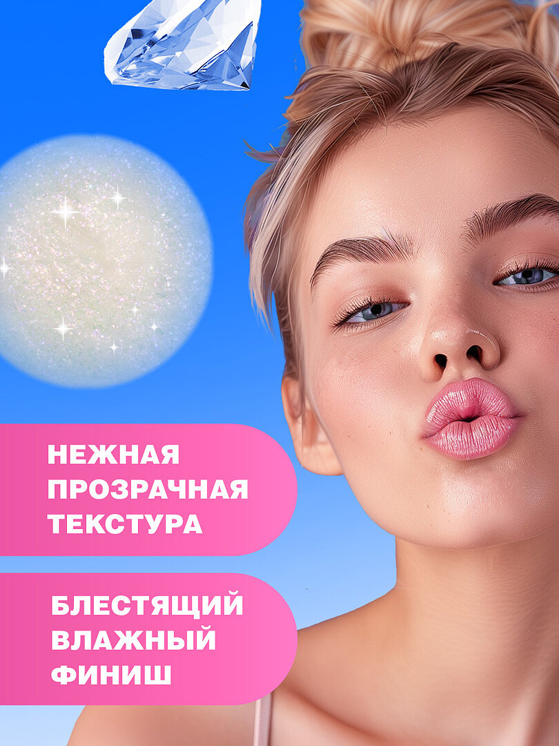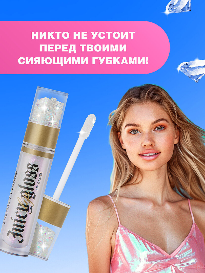 Купить Блеск для губ Juicy Beauty Bomb смягчающий тон 01 Diamond Star прозрачный с нежно-розовыми блестками