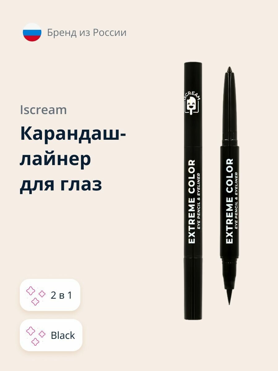 Карандаш-лайнер для глаз `ISCREAM` EXTREME COLOR 2в1 (black) интересное: