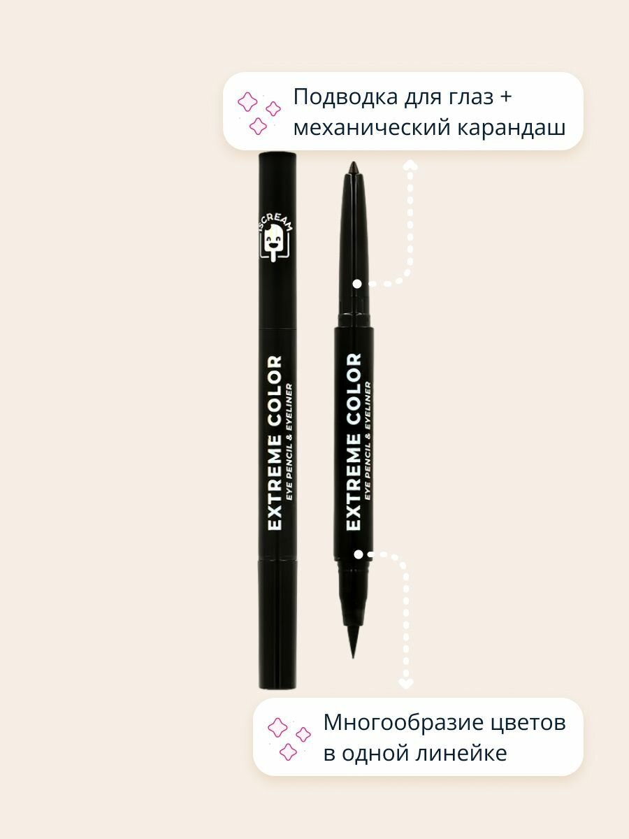 Купить Карандаш-лайнер для глаз `ISCREAM` EXTREME COLOR 2в1 (black)