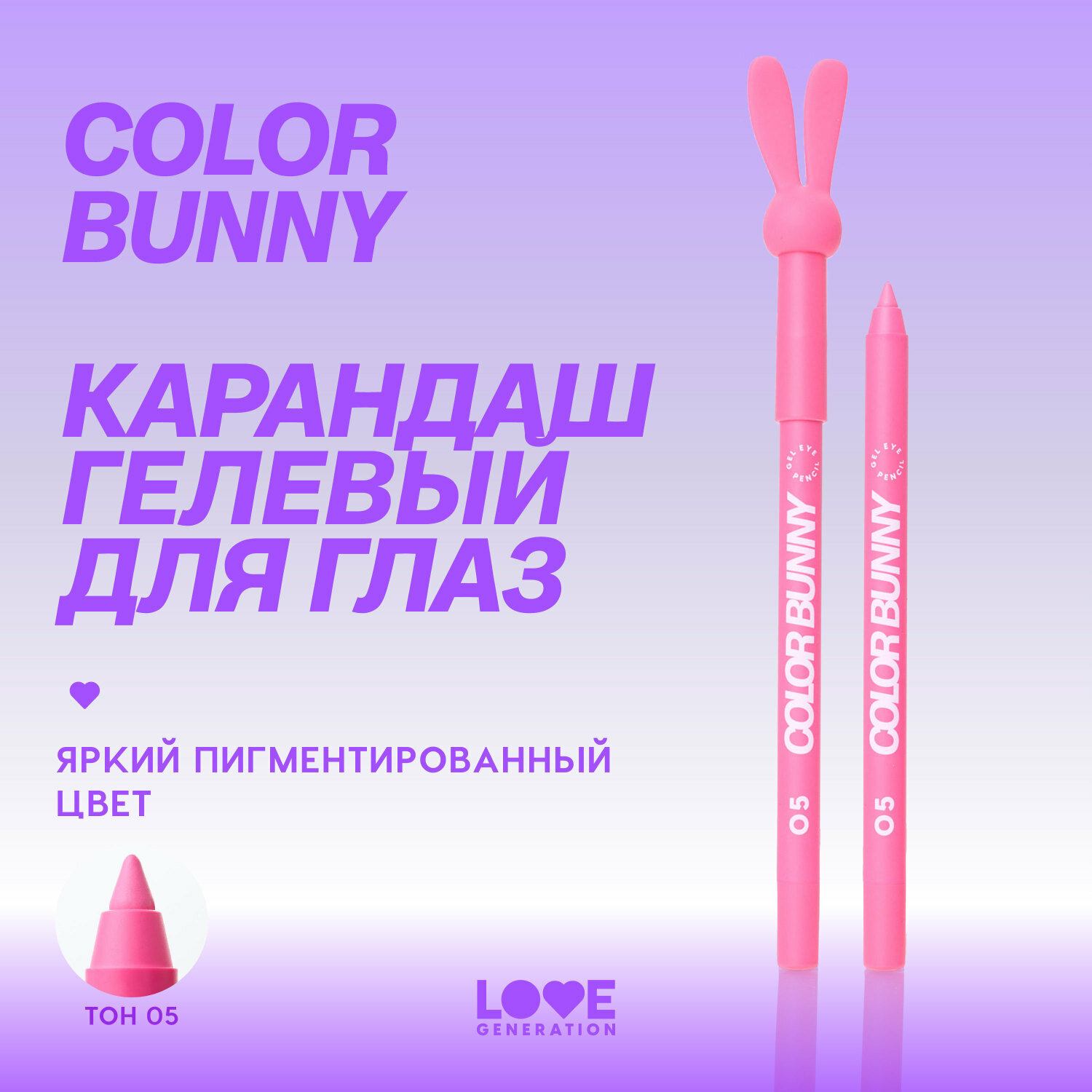 Купить Карандаш для глаз Love Generation Color Bunny гелевый, стойкий, насыщенный, тон 05, розовый, 1,3 г