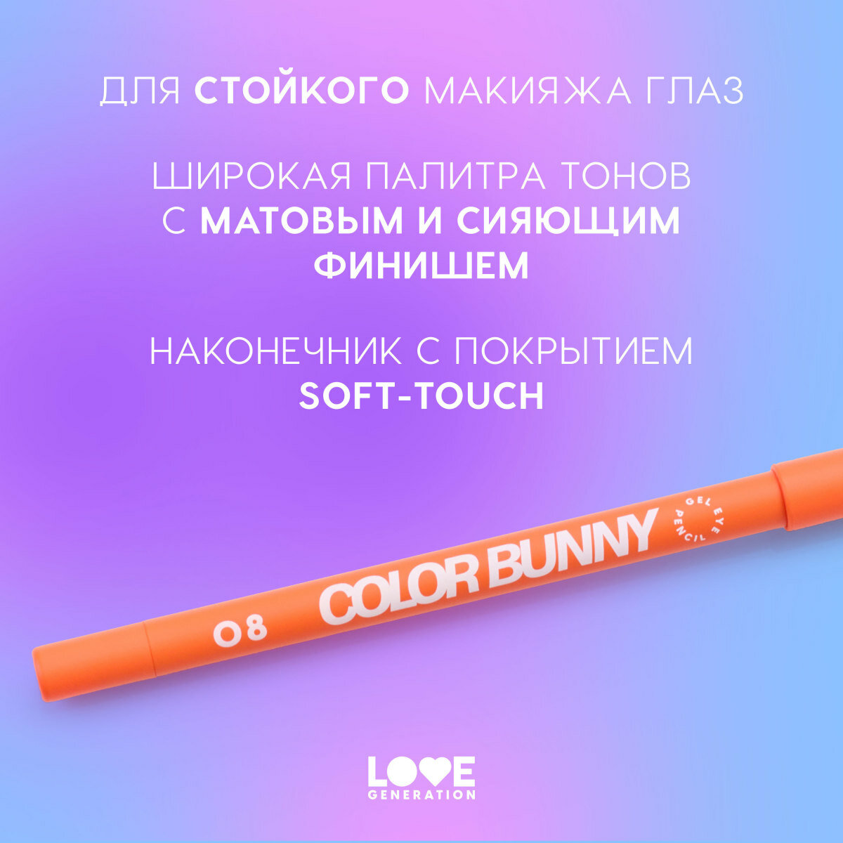 Купить Карандаш гелевый для глаз Love Generation Color Bunny, тон 08 оранжевый, 1,3 г