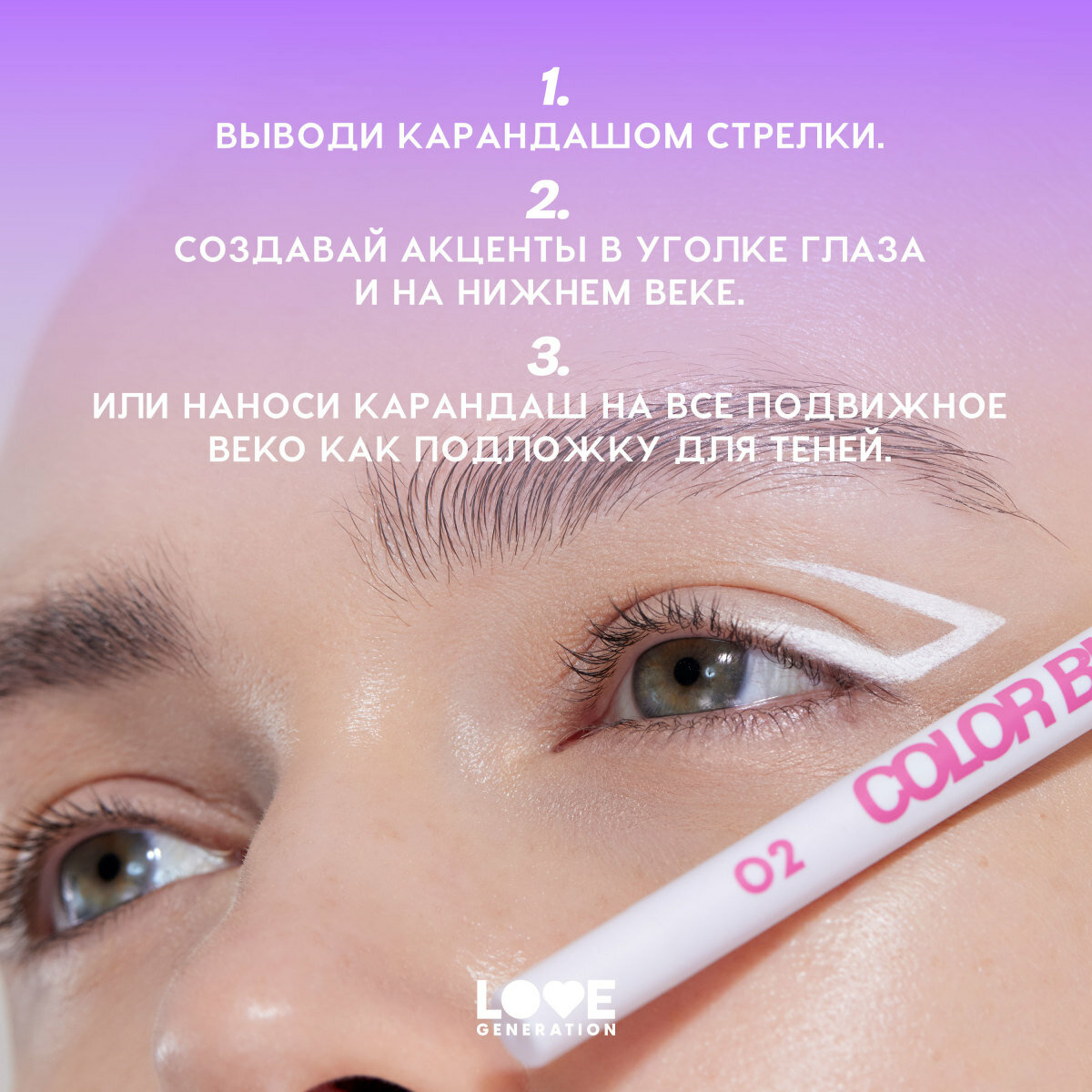 Карандаш для глаз Love Generation Color Bunny гелевый, стойкий, насыщенный, тон 09, сиреневый, 1,3 г