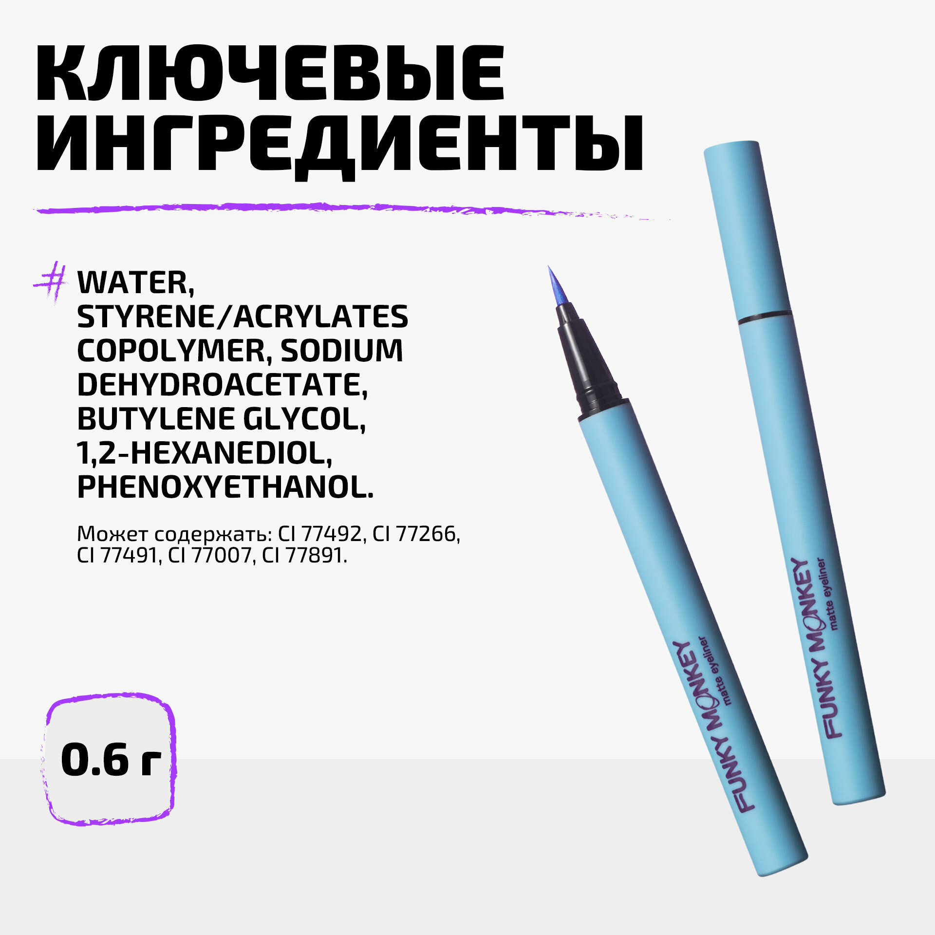 Funky Monkey Маркер для глаз матовый Matte eyeliner тон 04 голубой интересное: