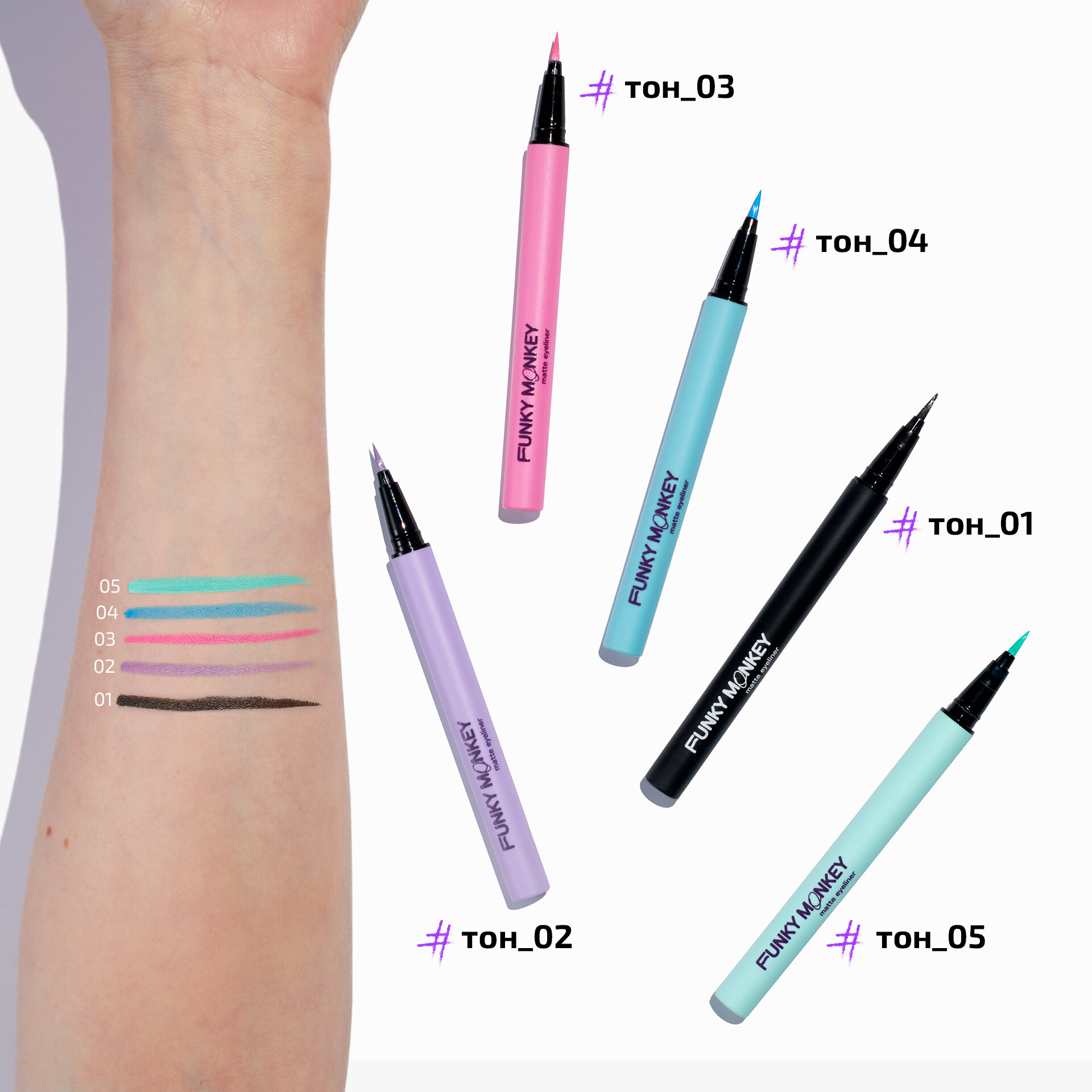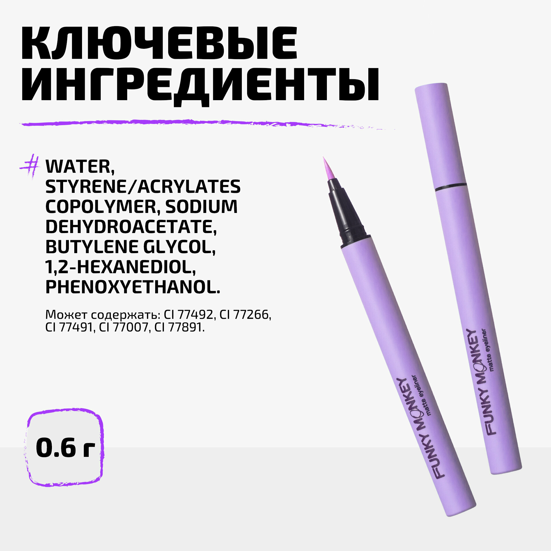 Funky Monkey Маркер для глаз матовый Matte eyeliner тон 02 лавандовый интересное: