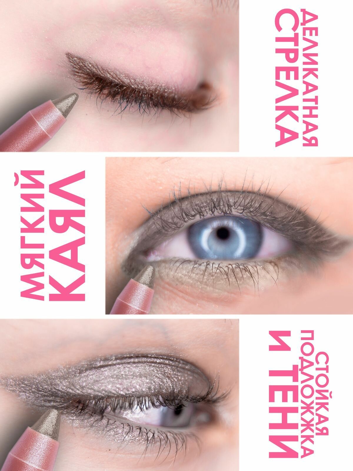 Подводка-тени-каял MAKE U MAKE E08, 3в1, стойкость 24 ч, водостойкая, серая шиншилла