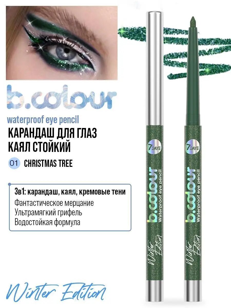 Купить 7DAYS Карандаш для глаз водостойкий лайнер каял B.COLOUR, 01 CHRISTMAS TREE