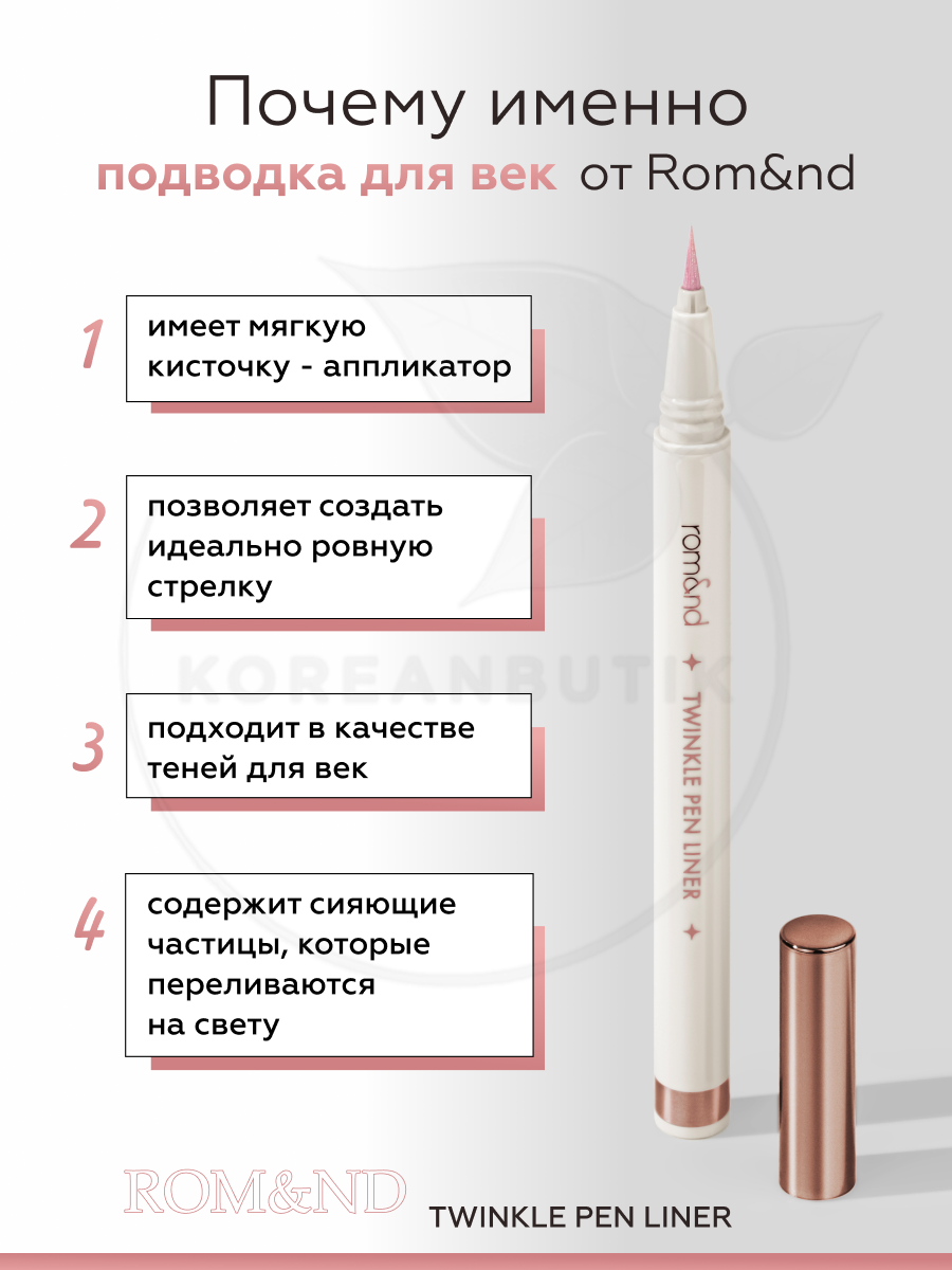 Подводка сияющая для век | ROM&ND Twinkle Pen Liner 03 Rosy Sparkle интересное: