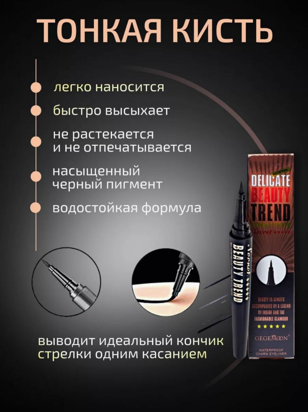 Жидкая подводка фломастер для глаз чёрная ультратонкая водостойкая Million Pauline TREND, 2 мл интересное: