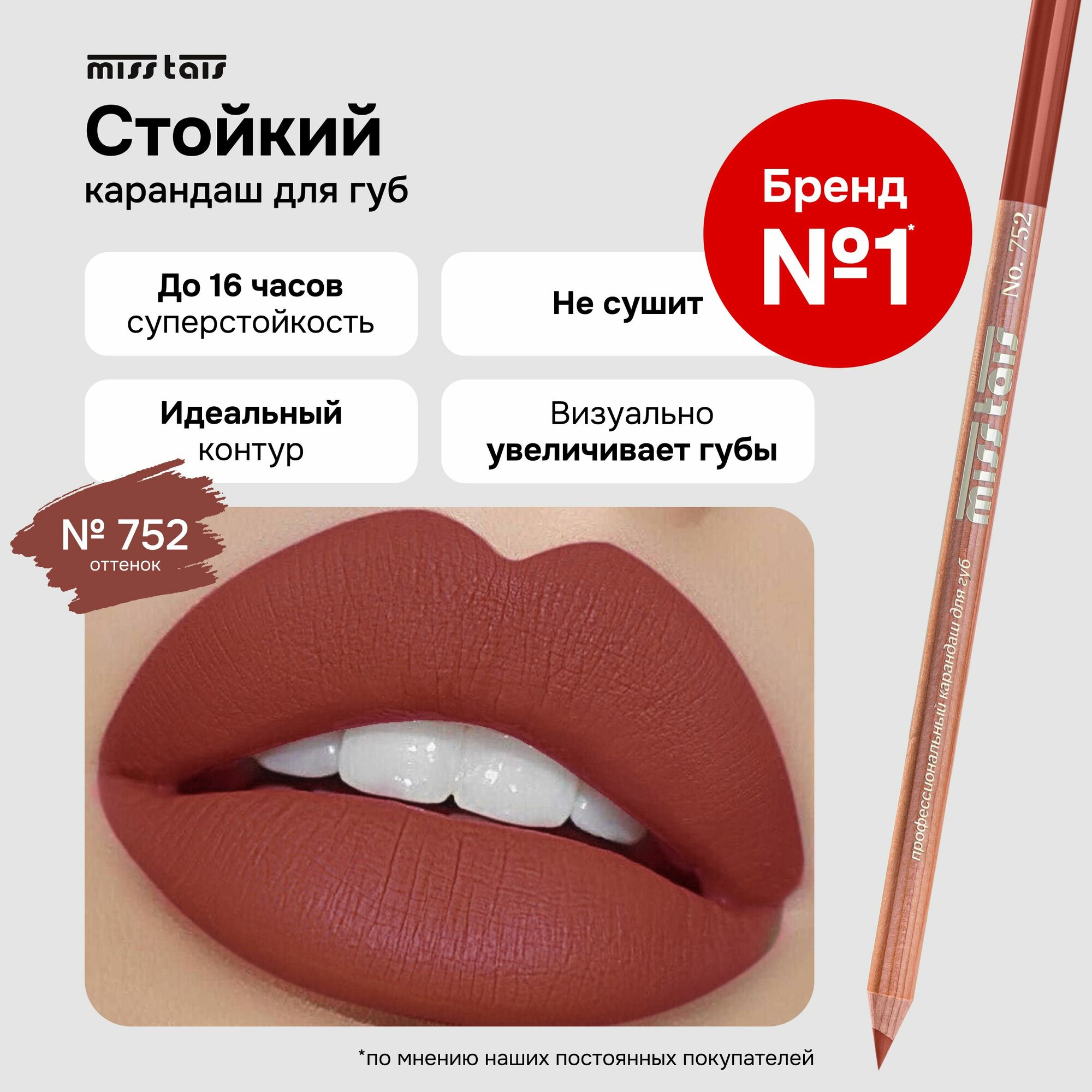 Купить Miss Tais Карандаш для губ стойкий матовый контурный №752 Светло-коричневый