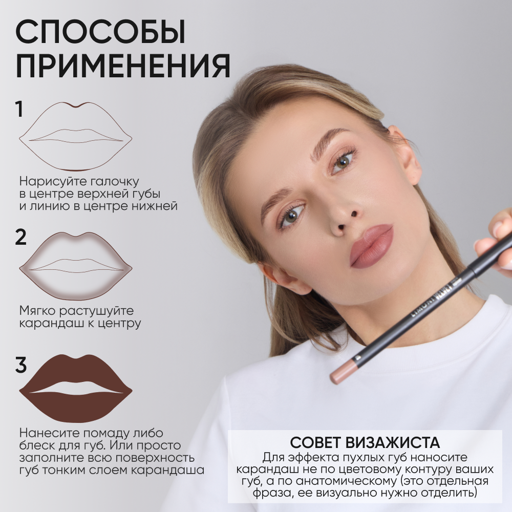 СохранитьLIMONI Карандаш для губ Velvet Matte Lipliner, пудровый, матовый, контурный, нюдовый, тон 05 интересное: