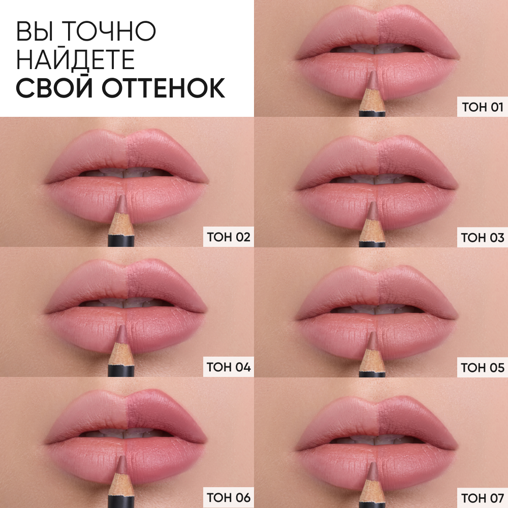 LIMONI Карандаш для губ Velvet Matte Lipliner, пудровый, матовый, контурный, нюдовый, тон 01