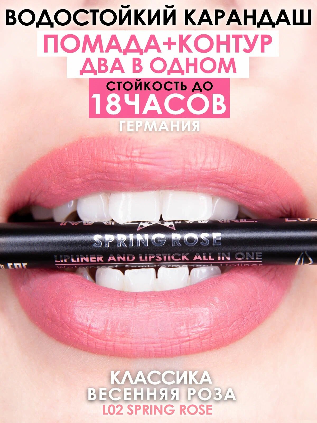 СохранитьКарандаш-помада 18 часов стойкости, MAKEUMAKE, весенняя роза, точилка интересное: