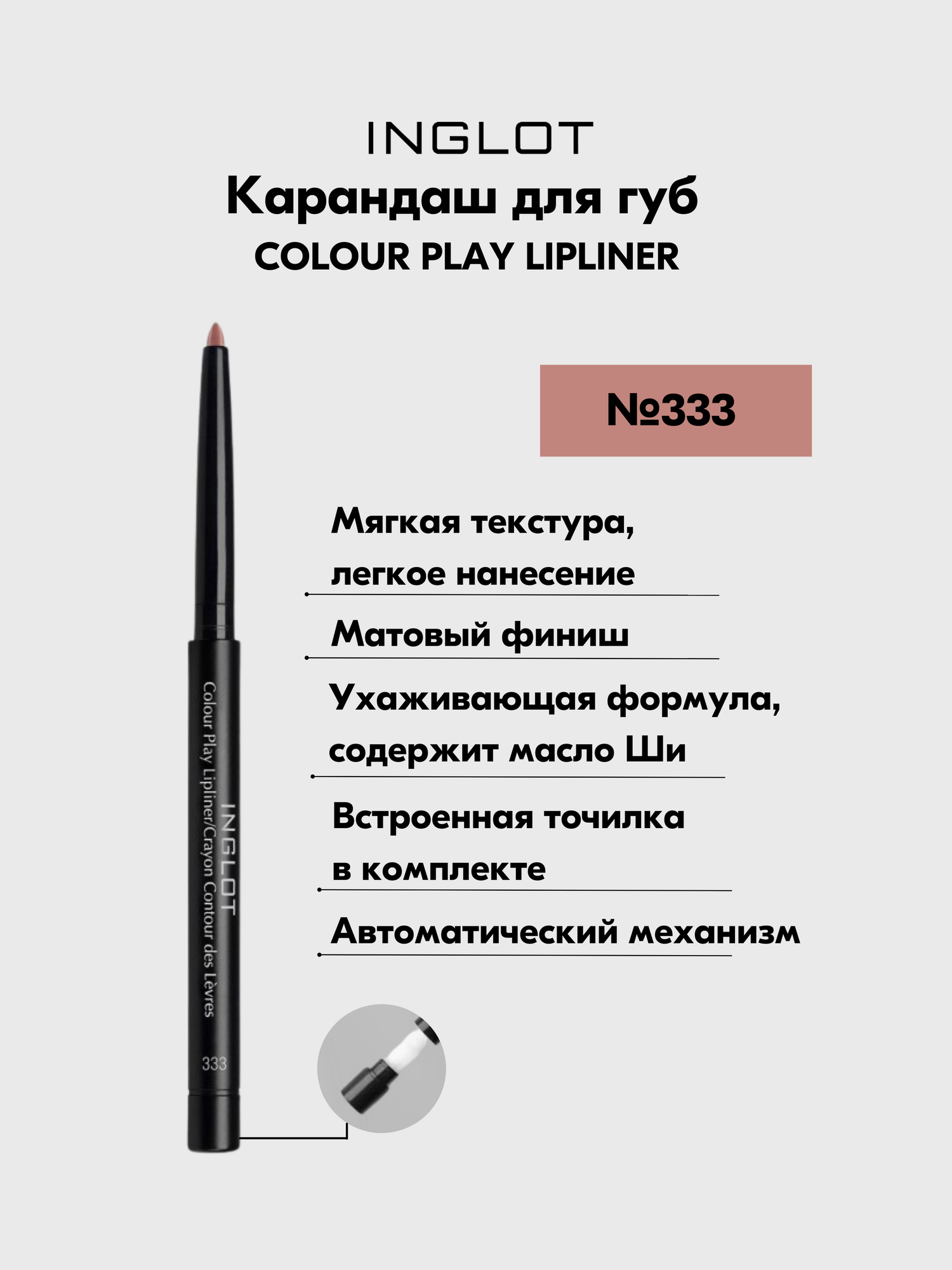 СохранитьКарандаш для губ INGLOT автоматический контурный матовый с точилкой COLOUR PLAY №333 интересное: