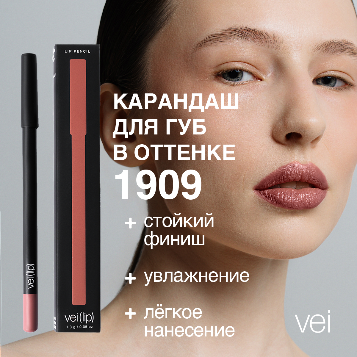 Купить Vei Карандаш для губ матовый холодный тёмно-пудровый розовый тон 1909 с натуральными маслами, 1,3 гр