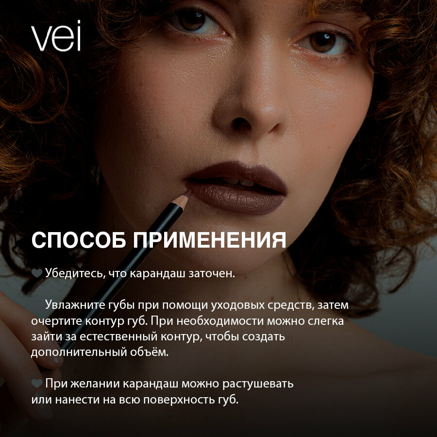 Vei Карандаш для губ матовый холодный коричневый тон 1944 с натуральными маслами, 1,3 гр