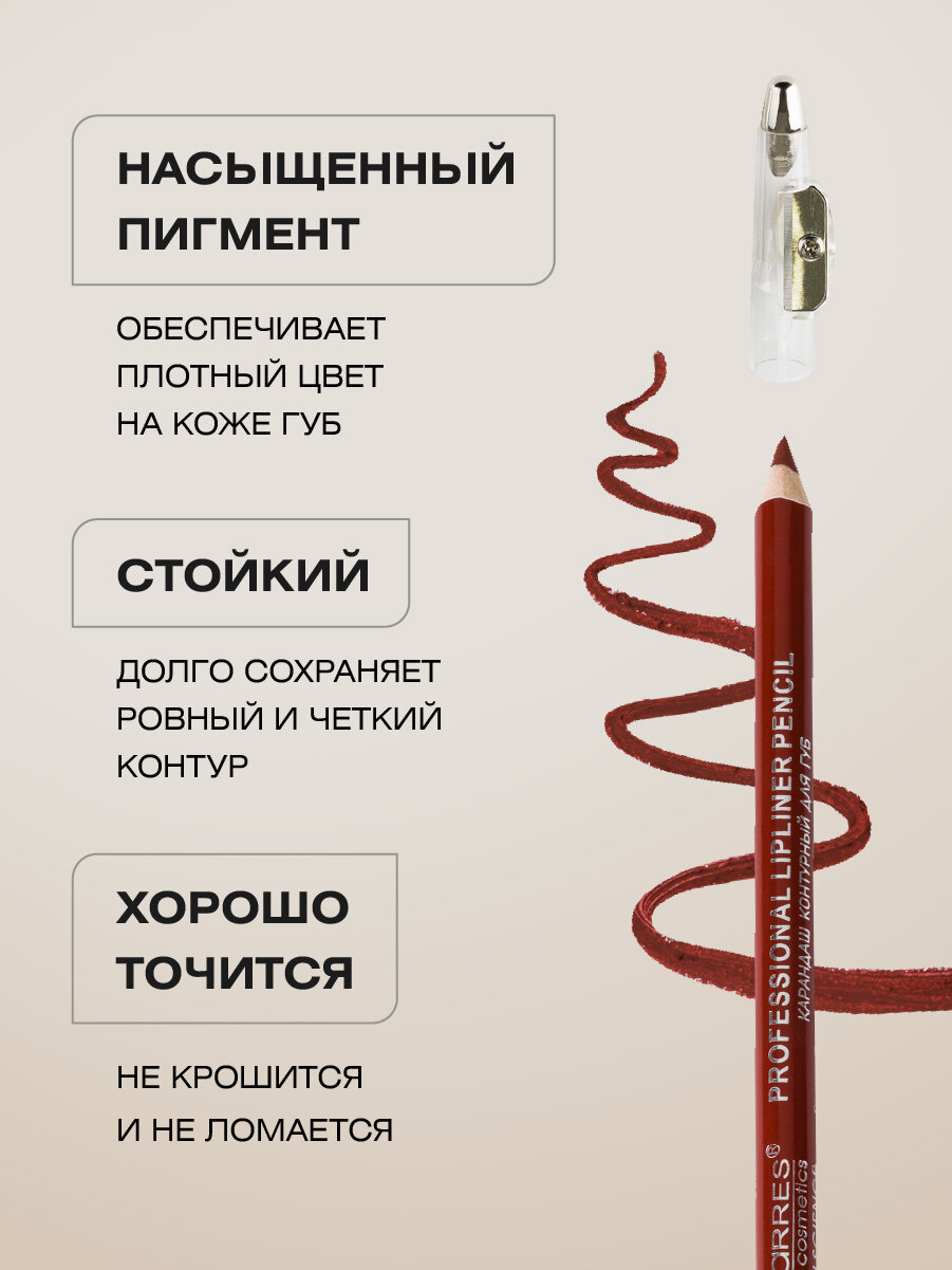 Карандаш для губ коричнево-красный Farres с точилкой, тон 025 maple
