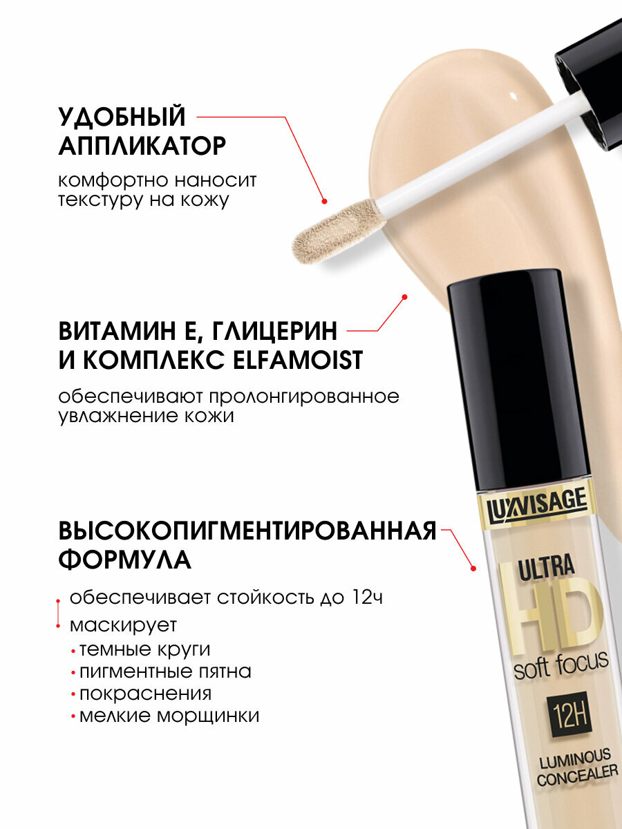 Консилер Luxvisage "Ultra HD" Soft Focus, тон 13, светоотражающий, 12 часов