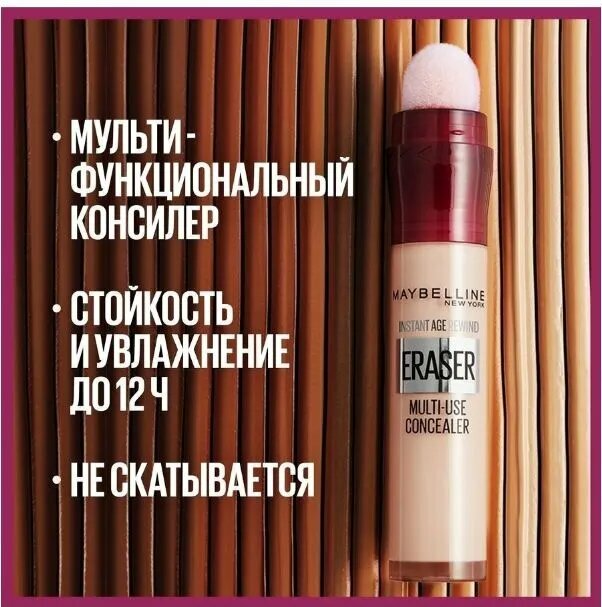 Maybelline New York Консилер для лица и глаз INSTANT ERASER, 01 Светло-бежевый, мультифункциональный, 6.8 мл
