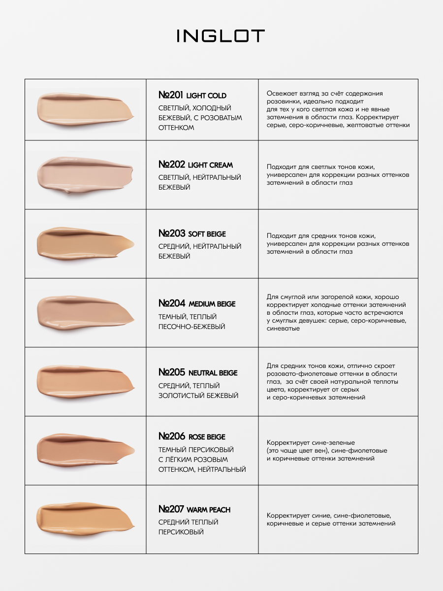 Купить INGLOT Пептидный лифтинг-консилер для области вокруг глаз Peptide Lifting Eye C №201