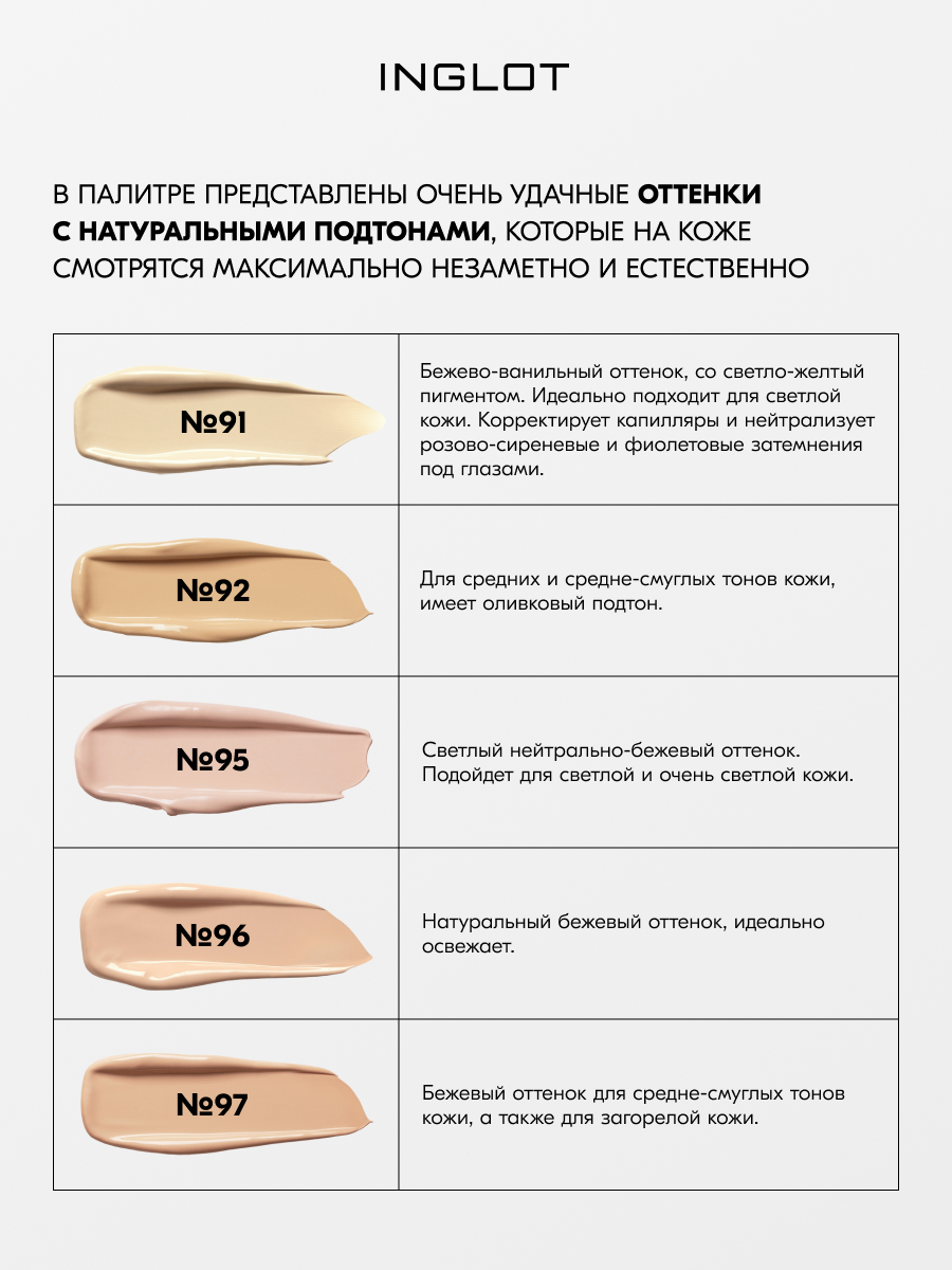 Маскирующий крем консилер под глаза INGLOT UNDER EYE CONCEALER №96 интересное: