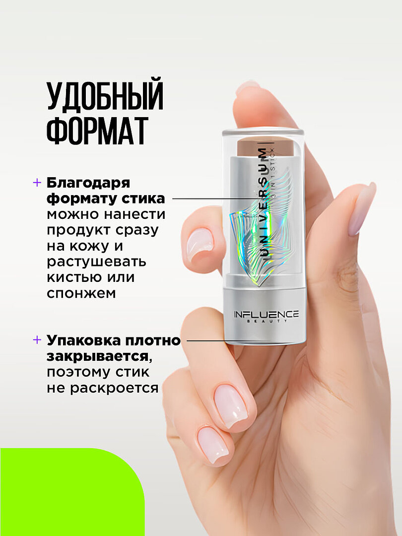 Контуринг для лица Influence Beauty в стике 3в1 Universum, тон 02 gliese / нейтральный коричневый интересное: